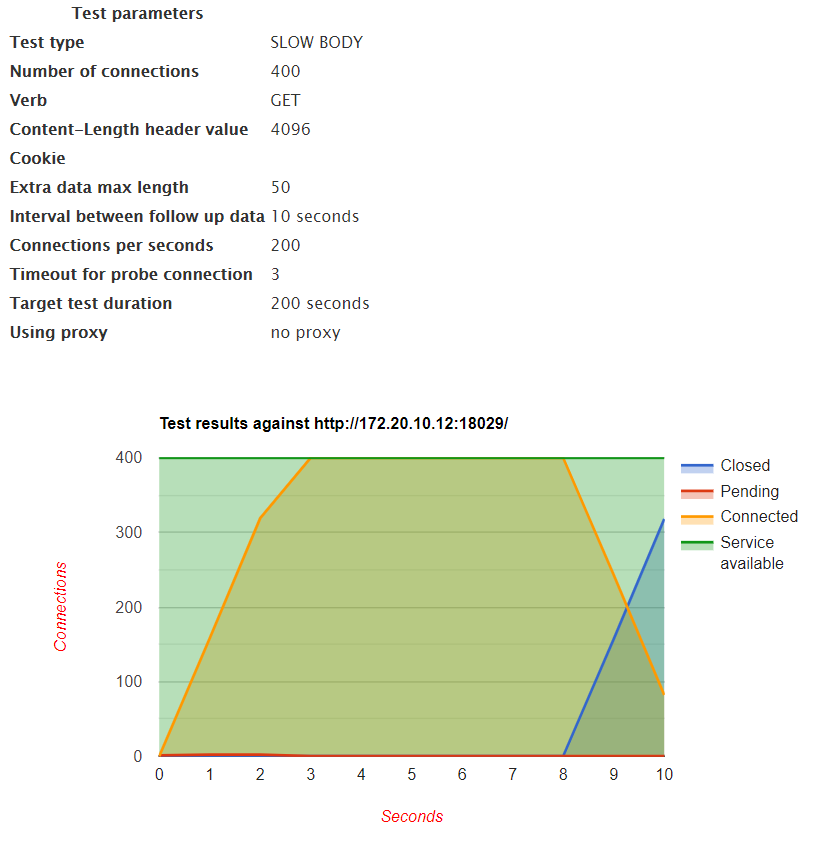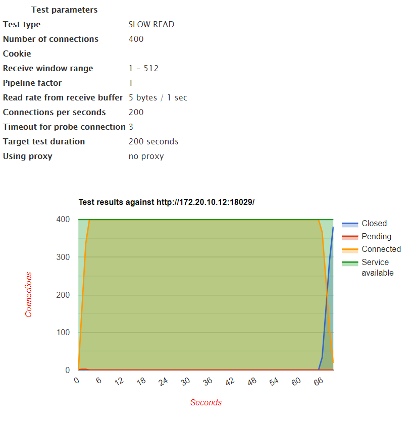 1 | $ slowhttptest -c 8000 -X -r 200 -w 512 -y 1024 -n 5 -z 32 -k 3 -u https://xxx.xxx.xxx -p 3 |