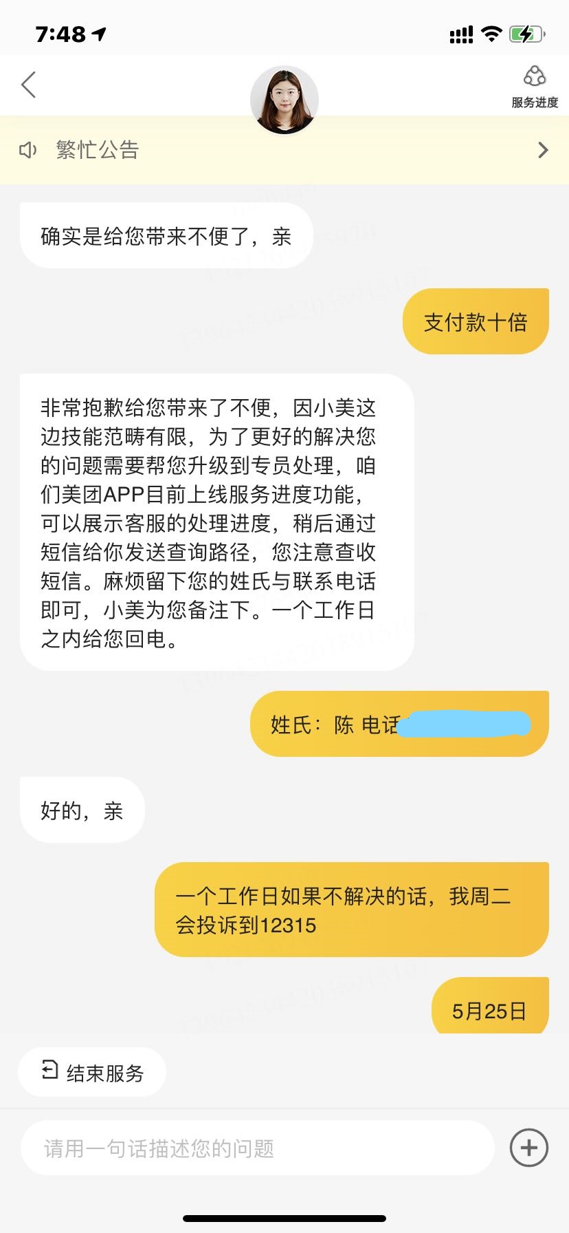 2021/5/24 一天无事发生,未得到美团专员客服联系