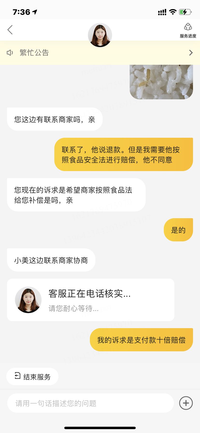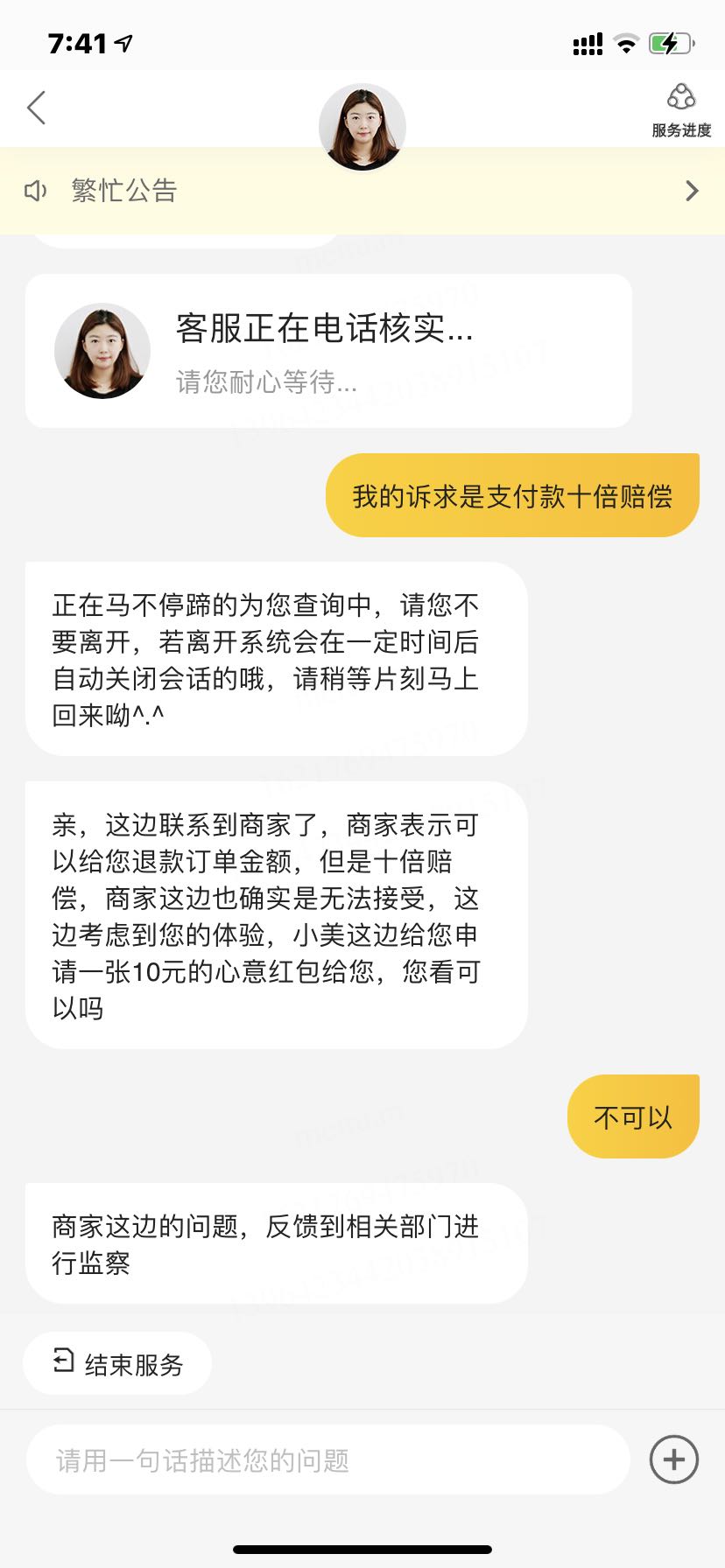 2021/5/25 14:54 接到专员客服电话,客服表示已对该店铺进行监管并对我退款进行十倍支付款赔偿