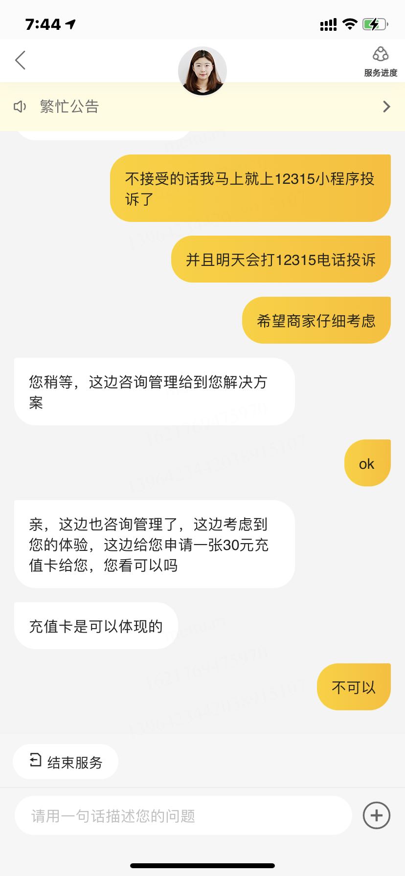 2021/5/23 19:44 客服表示给我一张30并且可提现的充值卡,表示拒绝