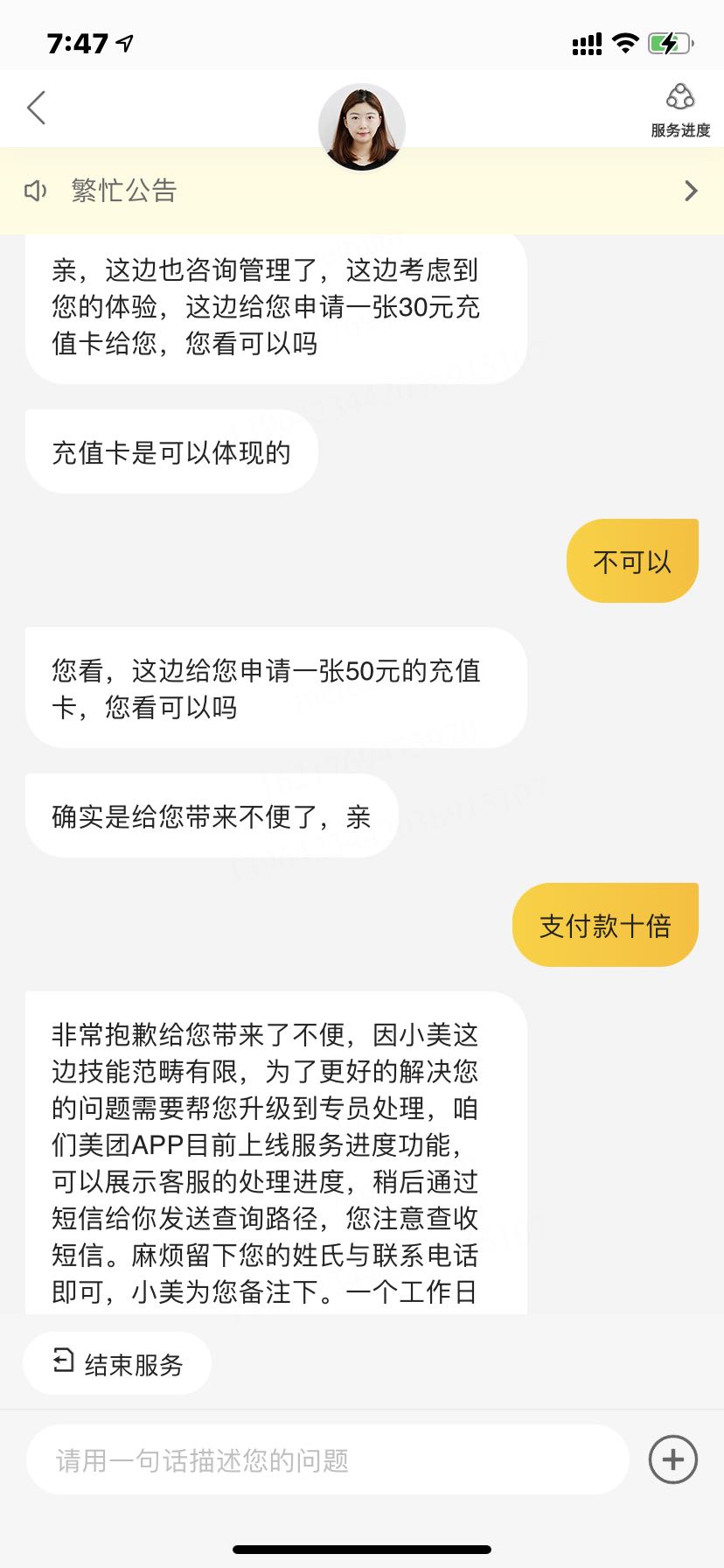 2021/5/23 19:04 因为明天要上班所以想今天解决于是尝试联系美团客服